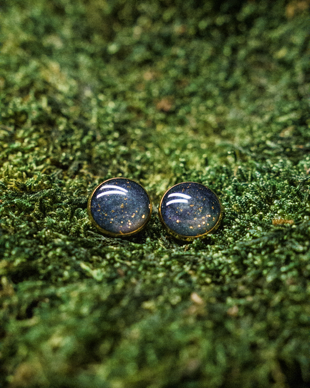 Kolczyki sztyfty imitujące rozgwieżdżone niebo.