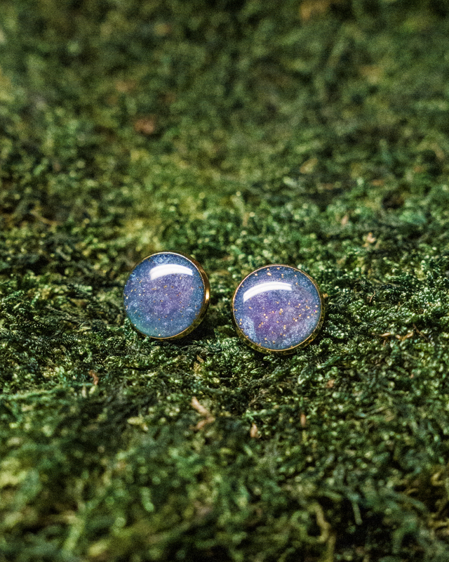Kolczyki sztyfty imitujące rozgwieżdżone niebo.