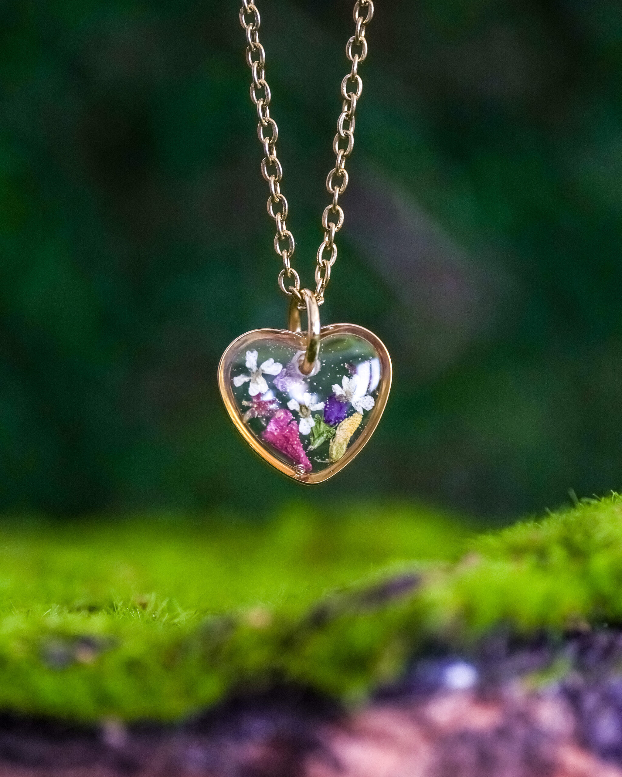 Inspiracją do tworzenia biżuterii z kwiatami ukrytej w krystalicznej żywicy były sekretniki/widoczki,